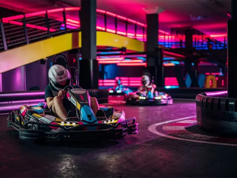 Preizkusili bomo prenovljeno najsodobnejšo večnivojsko karting progo v Evropi, ki je polna specialnih efektov, hitrih ovinkov in adrenalinskih dirkaških manevrov.